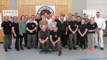 Karate hat in den letzten Jahren einen schlechten Ruf als Selbstverteidigungskunst bekommen. Das dies nicht sein muss, zeigte unser Verein in einem Selbstverteidigungsseminar Anfang Februar. Hierzu waren 30 Karateka aus Niedersachsen, Thüringen und Baden-Württemberg, sowie aus Bad Hersfeld und Kassel in Bebra zusammengekommen. Unsere Trainer Jürgen Dach und Jürgen Wacker (beide 4. DAN) hatten sich bewusst für die Heian Katas entschieden, da diese oft im Sportkarate als Anfängerkatas bzw. Katas mit niedrigem Stellenwert bezeichnet werden. Hierzu muss man wissen, dass Katas das Wissen über straßenbezogene Selbstverteidigung eines Karatemeisters beinhalten, welches er in eine Form zur Weitergabe an seine Schüler gebracht hat und somit Selbstverteidigung pur darstellt.