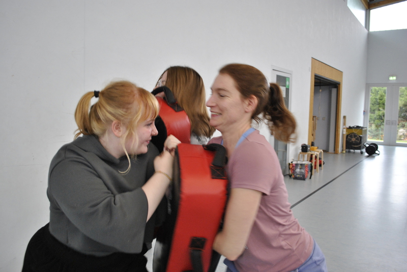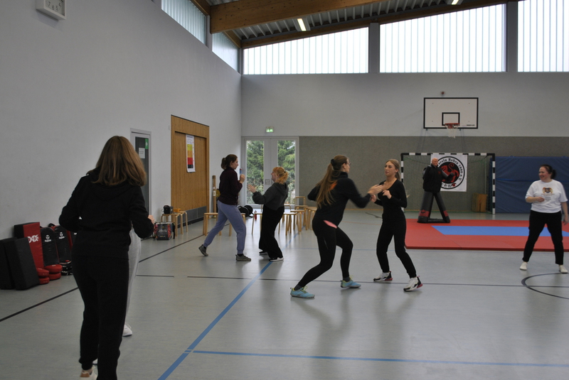 Abschließend wurde in der letzten Trainingsstunde das erworbene Wissen und Können in einem anspruchsvollen Selbstverteidigungsparcours mit sechs Stationen getestet, wobei die Teilnehmerinnen unter Stress ihre Verteidigungsfähigkeit unter Beweis stellen mussten. Auch wenn der Stress sie schnell an ihre Grenzen brachte, kam für keine der Teilnehmerinnen ein Aufgeben infrage, bevor die Zeit abgelaufen war.