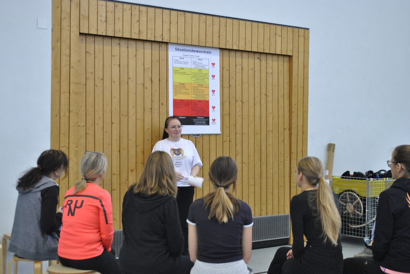 Am letzten Februarwochenende führten wir ein Selbstverteidigungs(SV)seminar für Frauen und Mädchen durch. An dem zweitägigen Seminar nahmen 16 Frauen und Mädchen im Alter von 14 bis 80 Jahren teil. In den ersten Trainingseinheiten ging unser SV-Lehrerteam auf das Grenzen setzen mittels klarer Körpersprache und Stimme ein. Dies fällt Frauen aufgrund rollenstereotyper Erziehung oft schwer. In weiteren Trainingseinheiten wurde das Situationsbewusstsein, d.h. zu wissen, was an jedem Ort um einen herum passiert. Anhand des Cooper-Colour-Codes wurde den Teilnehmerinnen bewusst gemacht, wie einfach es doch ist Probleme frühzeitig zu erkennen und diese zu vermeiden. „Erkennen eines potenziellen Problems,