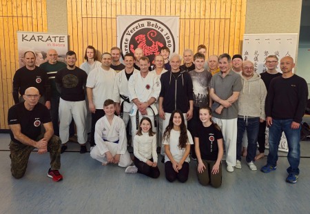 Am vierten Wochenende im Januar veranstaltete unser Verein erneut ein Selbstverteidigungsseminar mit angewandtem Karate. Ziel war es, mit verbreiteten Vorurteilen aufzuräumen: Karate habe in den vergangenen Jahren zu Unrecht einen schlechten Ruf im Bereich der Selbstverteidigung erhalten. Dadurch seien viele Interessierte zu teuren und teils unseriösen privaten Anbietern abgewandert. Dass Karate jedoch nach wie vor ein äußerst effektives Selbstverteidigungssystem ist, zeigten unsere beiden erfahrenen Trainer Jürgen Dach und Jürgen Wacker eindrucksvoll. Beide sind Träger des 4. DAN im angewandten Koshinkankarate und verfügen zudem über die DOSB-A-Lizenz in der Selbstverteidigung. Diese höchste, vom Deutschen Olympischen Sportbund vergebene Lizenz, steht für exzellente Ausbildungsqualität und umfassendes Fachwissen.