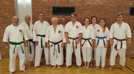 Am 18. August 2018 war Sensei Walter Rechel bei uns zu Gast. Er lehrte uns die Kata Hangetsu. Hangetsu ist eine Kata mit vielen Facetten und voll mit Nuancen auf die man achten muss. Die Kata, früher Seisan genannt, ist gleichzeitig eine der wichtigsten Kata für die Selbstverteidigung. Sensei Rechel beeindruckte uns wieder ein Mal durch sein beeindruckendes Wissen und seine Fähigkeit, anspruchsvolle Techiken einfach und verständlich zu erklären. Nach einem fünfstündigen Lehrgang waren wir uns alle einig, in 2019 in einem weiteren Lehrgang mit Sensei Rechel, die letzten Geheimnisse der Hangetsu zu erlernen.