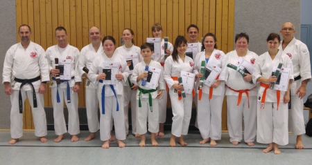 Folgende Prüfungen wurden abgelegt: 8. Kyu (gelber Gürtel) Sarah Wicke, Peggy Abitzsch, Sofia Capano, Sebastian Herter, Sandra Leutbecher, Simone Oelßner, Adrian Peters, Lina-Jolie Schade, Marlene Schmitt, 7. Kyu (orangener Gürtel) Marie Bicker, Luisa Gernhardt, Johanna Kehl, Maurice Kolle, Jonas Reyer, Saskia Reyer, Nick Heese, Selin Saygili, 6. Kyu (grüner Gürtel) Mia Deiß, Friedrich Herdt, Luis Knoth, Lukas Merz, Mia Neumann, Amely Peters, Tatjana Peters,, Alina Röse, Tom Schneider, 5. Kyu (1. blauer Gürtel) Adrian Riemenschneider, Maurice Hanf, 4. Kyu (2. Blauer Gürtel) Sankra Kinsky-Klatt, Maria Lange, Natalia Meister, Timo Röthig, Leon Sippel, Maja Wandel, Xhabir Zendeli.