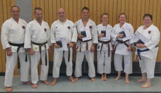 EIne Prüfung der besonderen Art führten wir in der vergangenen Woche durch. fünf Karateka stellten sich der Prüfung zum nächsthöheren Gürtel in der Oberstufe. Hierbei wurde nicht nur das Können der Prüflinge abgefragt, sie mussten auch die Selbstverteidigung unter körperlichen Stress absolvieren. Alle Prüflinge zeigten gute bis sehr gute Leistungen und waren nach zwei Stunden intensiver Prüfung glücklich, die neuen Gürtel und Urkunden aus der Hand von Prüfer Jürgen Dach zu empfangen. Geprüft wurden: Natalia Meister, 3. KYU, Maria Lange, 3. KYU, Sandra Kinski-Klatt, 3. KYU, Timo Röthig, 2. KYU und Mirko Panitz, 1. KYU.