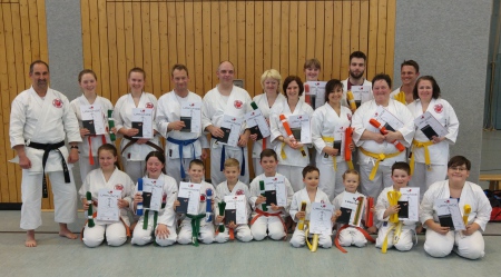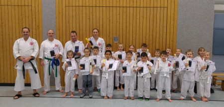Folgende Prüfungen wurden abgelegt: 8. Kyu (gelber Gürtel) Sarah Wicke, Peggy Abitzsch, Sofia Capano, Sebastian Herter, Sandra Leutbecher, Simone Oelßner, Adrian Peters, Lina-Jolie Schade, Marlene Schmitt, 7. Kyu (orangener Gürtel) Marie Bicker, Luisa Gernhardt, Johanna Kehl, Maurice Kolle, Jonas Reyer, Saskia Reyer, Nick Heese, Selin Saygili, 6. Kyu (grüner Gürtel) Mia Deiß, Friedrich Herdt, Luis Knoth, Lukas Merz, Mia Neumann, Amely Peters, Tatjana Peters,, Alina Röse, Tom Schneider, 5. Kyu (1. blauer Gürtel) Adrian Riemenschneider, Maurice Hanf, 4. Kyu (2. Blauer Gürtel) Sankra Kinsky-Klatt, Maria Lange, Natalia Meister, Timo Röthig, Leon Sippel, Maja Wandel, Xhabir Zendeli.