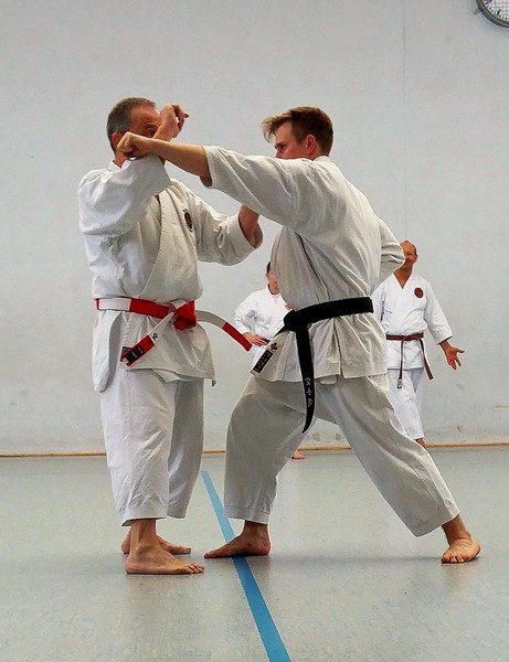 Am 1. Juni hatten wir bei bestem Wetter Shihan Michael Lechte, 7. DAN zu einem vereinsinternen Kata- & Kata-Bunkai-Workshop eingeladen. Thema des Workshops war die Kata Sochin. Shihan Lechte, der die Erklärung über die Bunkai bevorzugt, lehrte uns die Kata und in ihr enthalten Anwendungen zur Selbstverteidigung. Hierbei legte er besonderen Wert auf die korrekte Ausführung und das richtige Timing.