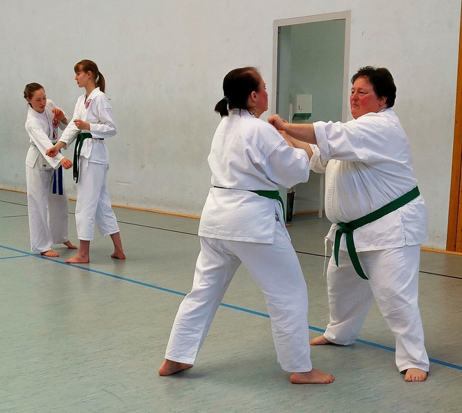Am 24. Februar führten wir einen Selbstverteidigungs (SV)-lehrgang mit Karatekas aus Bebra und Bad Hersfeld durch. Während der drei eineinhalbstündigen Trainingseinheiten wurden viele Facetten des